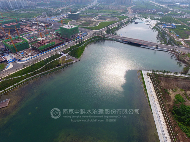 新川之心中央公園包括西區(qū)和東區(qū),西部湖區(qū)總面積約為95000m2,分為東西兩片水域,其中東湖水面面積約為60000 m2,西湖水面面積為35000 m2,常水位時平均水深約2m。由南京中科水治理股份有限公司對湖區(qū)進行生態(tài)系統(tǒng)的構建。