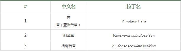 被子植物門 Angiospermae,單子葉植物綱 Monocotyledoneae,沼生目 Helobiae,水鱉亞目 Hydrocharitineae,水鱉科 Hydrocharitaceae,苦草屬 Vallisneria linn:本屬全球范圍內有10種,我國有3種,南北各省區(qū)均產。