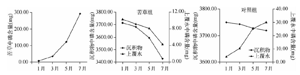 苦草對水體營鹽的去除率隨生物量的增加不斷增大,當生物量達到 2380.00g時,去除率放緩??嗖莞瘮♂尫诺牧状蟛糠直坏啄辔?,少量進入水體。草腐敗分解具有階段性,前36d分解迅速,以后分解速率顯著下降。